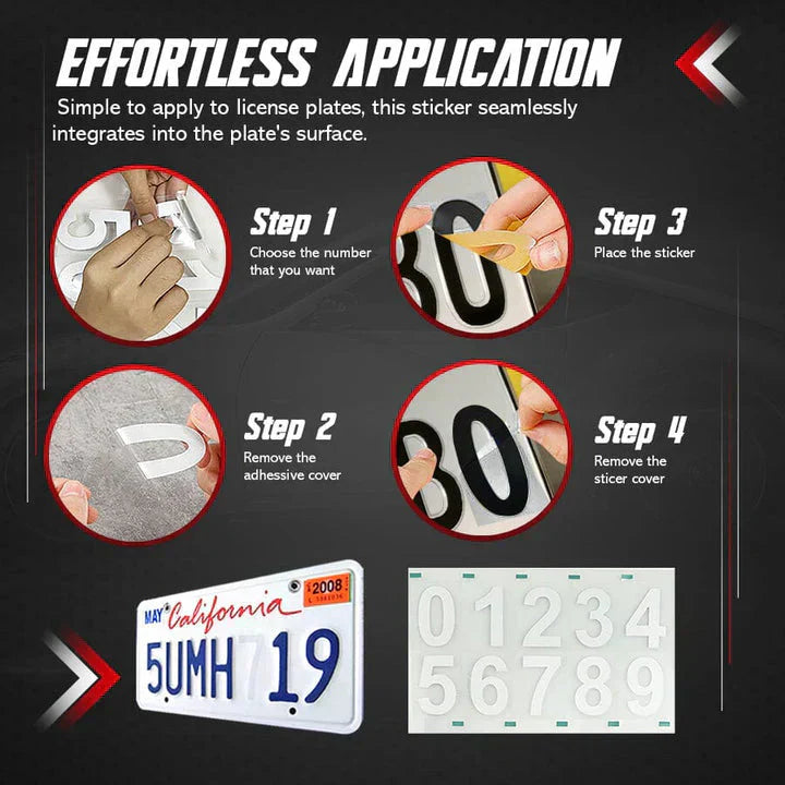 Simply paste it on the correct numbers and remove the film to ensure your plate stays hidden and protected within minutes.